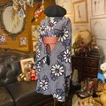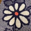 【浴衣リメイク ミニミディ ワンピース ドレス 帯サッシュベルト 和洋折衷 レトロ 古着 ハンドメイド 藍と紅に咲いた、大輪のデイジー詩 W-554】