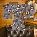 浴衣リメイク ミニミディ ワンピース ドレス 帯サッシュベルト 和洋折衷 藍と紅に咲いた、大輪のデイジー詩 W-554