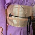帯ベルトには春霞のようなシャンパンカラー。