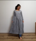 ∴再出品∴リネンのフィッシュテールワンピースこの度はありがとうございます。上質なリネンにセンスの良いデザインで気に入りました。胸がVネックで開いているので顔、首まわりがすっきり見えます。これから歳を重ねてグレーヘアになった時にこの赤色が素敵かなと長い目で考えて決めました。サイズの調整もしていただき大満足です。また機会がありましたらどうぞ宜しくお願いします。