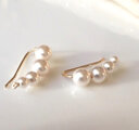 サイズの異なる4つのパールが弧を描いて並ぶイヤーアクセサリー。
