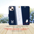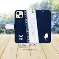 iPhone専用 手帳型スマホケース (カメラ穴あり/はめ込み式/スタンド機能付き)【アイラブ・パグ(ネイビー)】