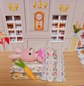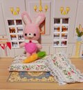 - 特徴: 可愛らしい服着たうさぎちゃんです。布団でおねんね