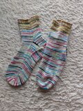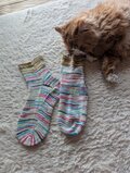 ちなみに竹串か?!ってくらい細い針で編んでるので意外と薄いです。普通の靴下と同じように履けますよ