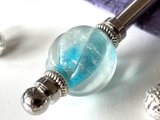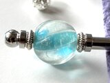 水色とクリアカラーの2トーンカラーのとんぼ玉でかんざしを作りました。