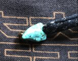 中綿を入れ、男絣で作ったループを付け、ループの先に、トルコ石と虎目石を付けています。