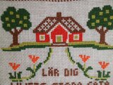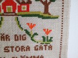 スウェーデンで見つけた手刺繍のタペストリーです。