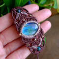ラブラドライト マクラメ編みバングル風ブレスレット(男女兼用可天然アクセサリー)誕生日プレゼントギフト 3141