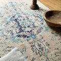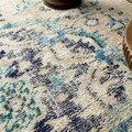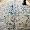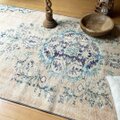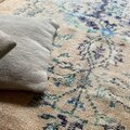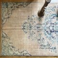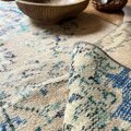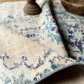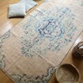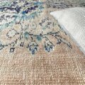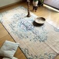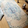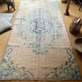 99×222 ペールベージュ×ブルー メダリオン 擦れトルコヴィンテージラグ