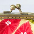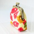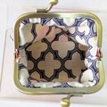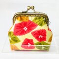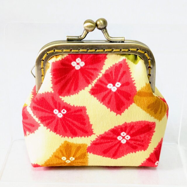 生成り地に扇型の柄が描かれた着物でがま口を作りました。