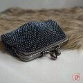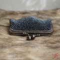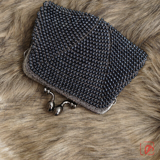 ばあば作☆大きめ・総ガラスビーズのスクエアがま口(Hämatit・1971)