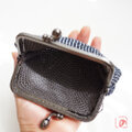 長玉つまみは開閉しやすく、10.5cm角型口金の作品は四角い物の収納に適しています。