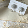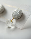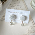透明ビーズをふんだんに刺繍し、その下でビーズパーツが揺れる ピアス/イヤリングです。
