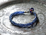 アンティークアイアンブルーシードビーズと飴色ホワイトハーツを繋いだ4連ブレスです。