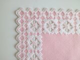 スウェーデンで見つけたハーダンガー刺繍のクロスです。ノルウェー生まれのハーダンガー刺繍は透かし模様が特徴で、繊細で緻密な幾何学模様を表現しています。