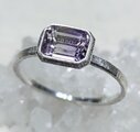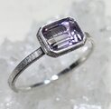 淡いパープルとイエローのグラデーションが可愛いブラジル産アメトリン、藤の花や紫陽花のようなイメージ*上品な色合いで極めて光輝良く凛と煌めくエメラルドカットルースを用いたアンティーク調シルバーリングです*リングは古鉄錆のようなマット仕上げ、10~18号(推奨サイズ)の範囲を目安に調整可能、サイズ確定後にマットな覆輪で石留め致します*通常、黒化遅延処理を施しますが銀そのものの変化をお好みの場合は処理不要とお申し付け下さい*黒化防止ロジウム(最終画像下段色味参照)など各種コーティングご希望の場合は承ります(オプション1000円)