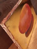 古典技法の黄金背景テンペラ画です。個展的なテーマではなく普段選ばないようなものを意識していたらそんな時期にたまたま檸果(マンゴー)を頂いたのがきっかけでした。檸果の色合いが金地に映える気がして描いてみました。大きな卵のようなフォルムも単調だけど美しい。