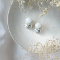 フロスト加工された日本製の小粒パールで、ビーズを取り囲みました。