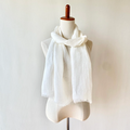 日本の伝統色、生成り色のストールです。真っ白ではない自然なリネンのもつ本来の色です。春のお出かけにもぴったり、お顔周りを華やかに魅せてくれる一枚です。