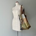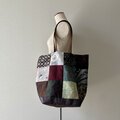 帯と着物を丁寧に解き、ホームクリーニング後にパッチワーク、バッグを仕立てました。パッチワークの生地を正確に裁断、角をキリッと合わせ、美しい格子を生んでいます。