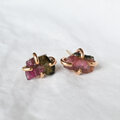 原石トルマリンの14kgfスタッドピアスL【C】(両耳・ペア)・バイカラー
