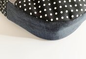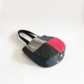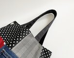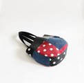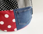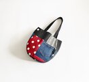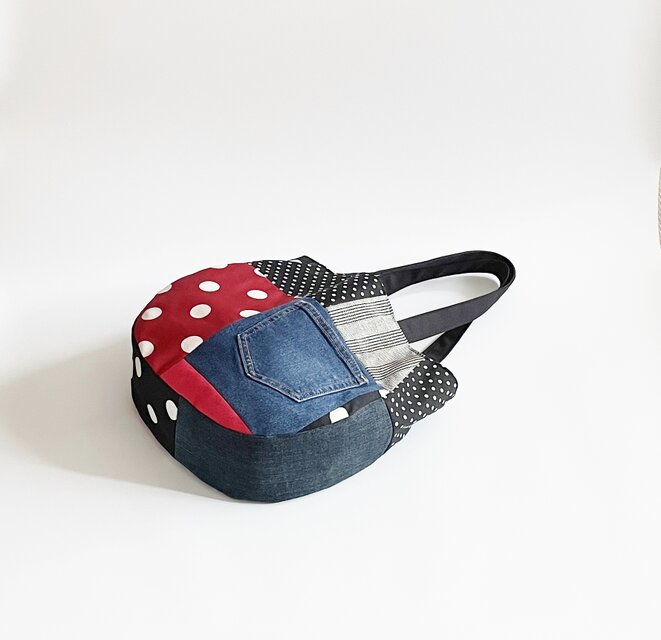 デニムパッチワークバッグ レッド ブラック ドット モノトーン 肩掛け A4