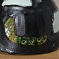 乾いたら素焼きをし、マット釉薬・織部釉薬・鉄サビを筆塗し、全体に黒釉薬を塗り、本焼きをします。