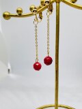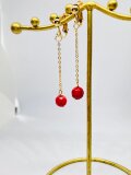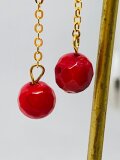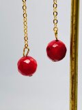 3月誕生石!【イヤリング】チェーン・カット・赤珊瑚・ゴールド♪