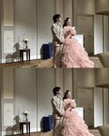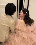 実例写真!カラードレス ローズピンク 取り外しオフショルダー もこもこドレス 編み上げ 華やか 結婚式 花嫁