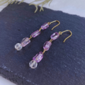 すみれ色のしずく – 三連クオーツの癒しピアス