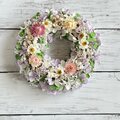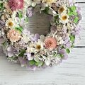 グリーンとパープルのアジサイと合わせたさわやかな印象のリースです。