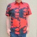 新作手作り半袖蛸シャツ(騙し絵オクトパス)赤黒