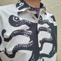 新作手作り半袖蛸シャツ(騙し絵オクトパス)白黒
