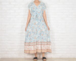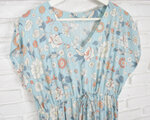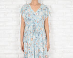 【大きいサイズ】新作!爽やかな花柄Vネックフリルワンピース ライトブルー