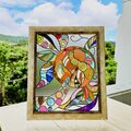 鮮やかな実をつける「ザクロ」をモチーフに、命の輝きや豊かさをカラフルに表現したグラスアートです。