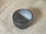 内側は淡いグレーの釉薬が掛かってツルッとしており、外側は炭化焼締めによる黒っぽい色合いで少しザラっとした手触りです。