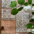 様々なデザイン違いのボタニカルが繋がった、暖かみのある愛されカラーのビンテージラグ