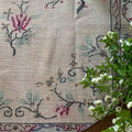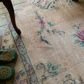 表はシャビーなペールカラーに、とっても素敵なアンティークローズが可愛い、クラシックなトルコラグです