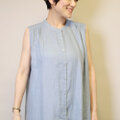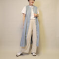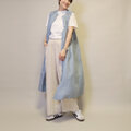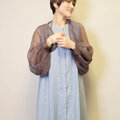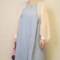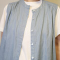 【新作】ノースリーブゆったりめギャザーシャツワンピース/アウター/羽織にも◎(ブルー)25020BLF