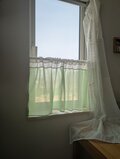 暑さを忘れてしまうような優しい色合いのカフェカーテンです。