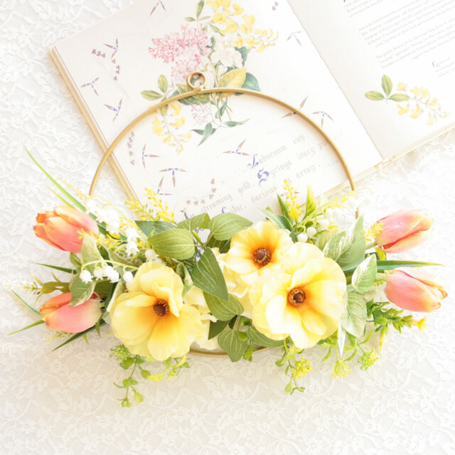 チューリップとラナンキュラスの春色リングリースやさしいイエローの彩り