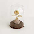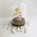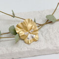 フリルパンジーの波打つ花びらを丁寧に再現し、ハーフマットのゴールドとシルバーのコンビネーションが上品な華やかさのブローチをドーム状のガラスに閉じ込めました。中のブローチはマフラーやトートバックのワンポイントとしても着けられ、装身具として使わない時にはメタル土台にセットしてインテリアとしてもお楽しみいただけます。