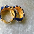ネイビーのエナメルペイントされたゴールドトーンフープイヤリング。