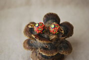 可愛い模様を立体的に重ね合わせ、コロンとしたイヤリング・ピアスにしました。
