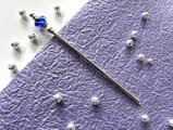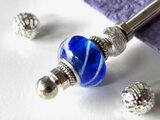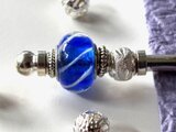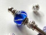 青と白のストライプ模様のとんぼ玉でかんざしを作りました。