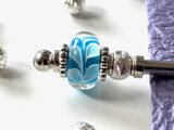 水色のリーフ模様のとんぼ玉でかんざしを作りました。