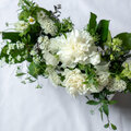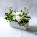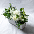 白を基調とした様々なお花を使用し、清らかで落ち着いた雰囲気のアレンジメントです。ご家族や生前お世話になった方、ペット…故人を偲び、安らかな眠りを願う優しい気持ちを込めて。