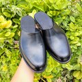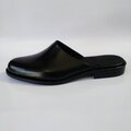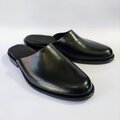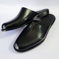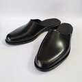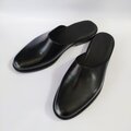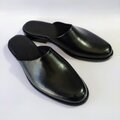 「極めてシンプルなスリッパレザーサンダル」★無料サイズ調整★サイズ24.5cm~ 男女兼用 光沢ブラック