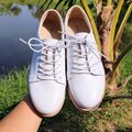白で統一したシンプルなデザインとなっているため、どんなコーデにもすんなりフィットします。男女兼用のスニーカーです。