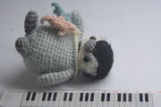 毛糸で編んだストラップを縫い止めているので吊るせます。